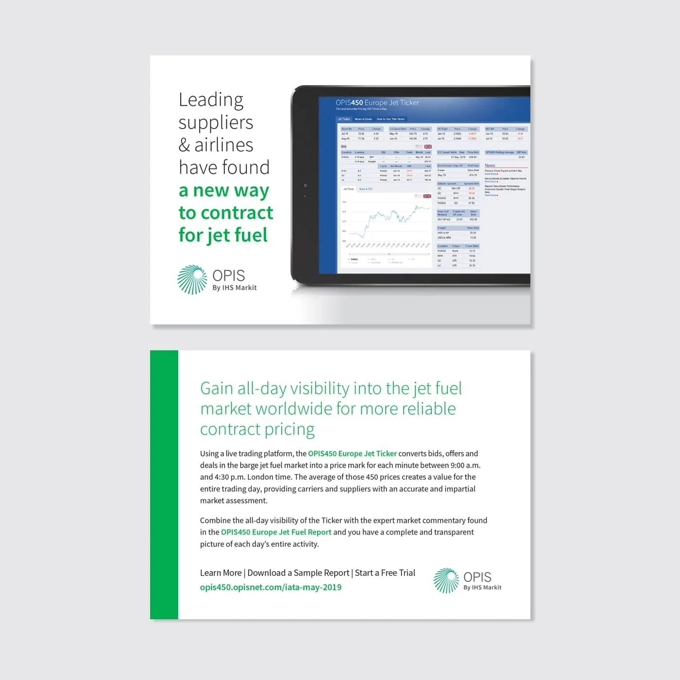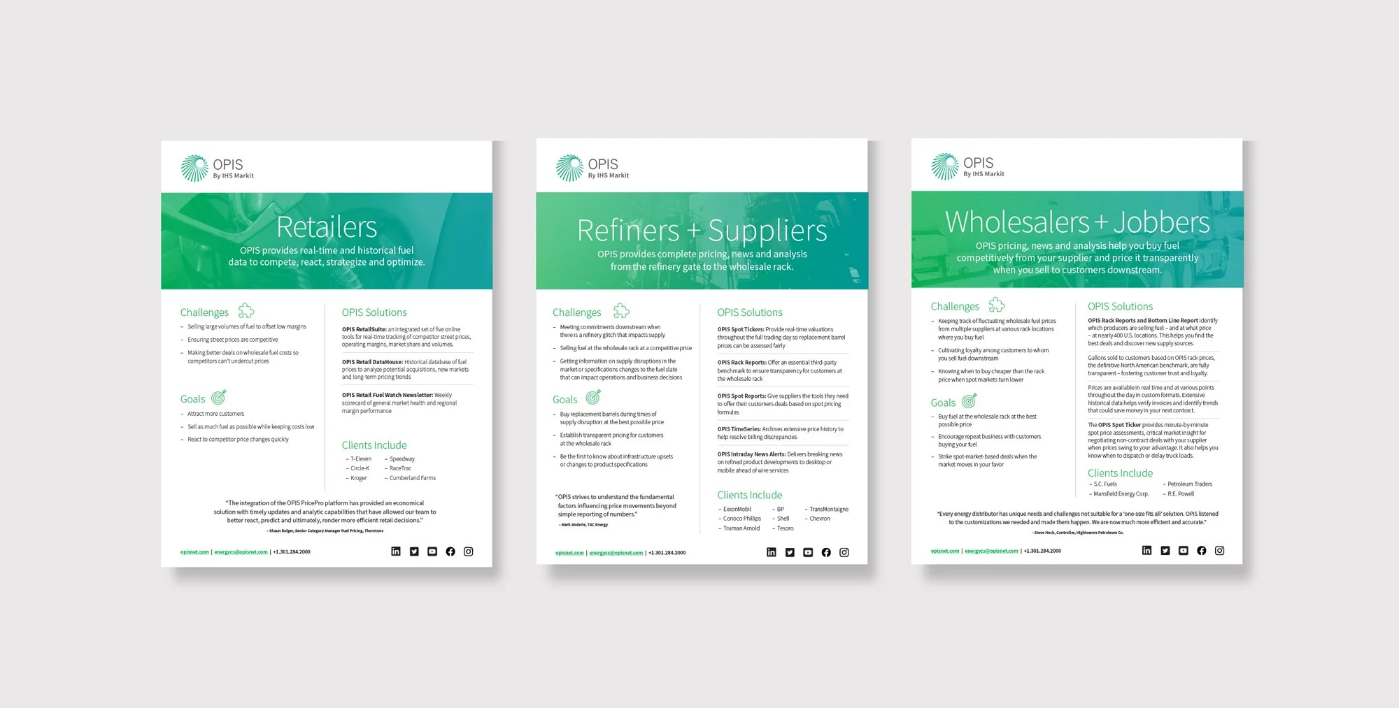 OPIS, a division of IHS Markit, provides global energy pricing, news, and analysis across oil, gasoline, diesel, jet fuel, and other commodities, as well as industry education and events. Marketing efforts required multi-channel creative support to promote services, conferences, and data products to an international audience.